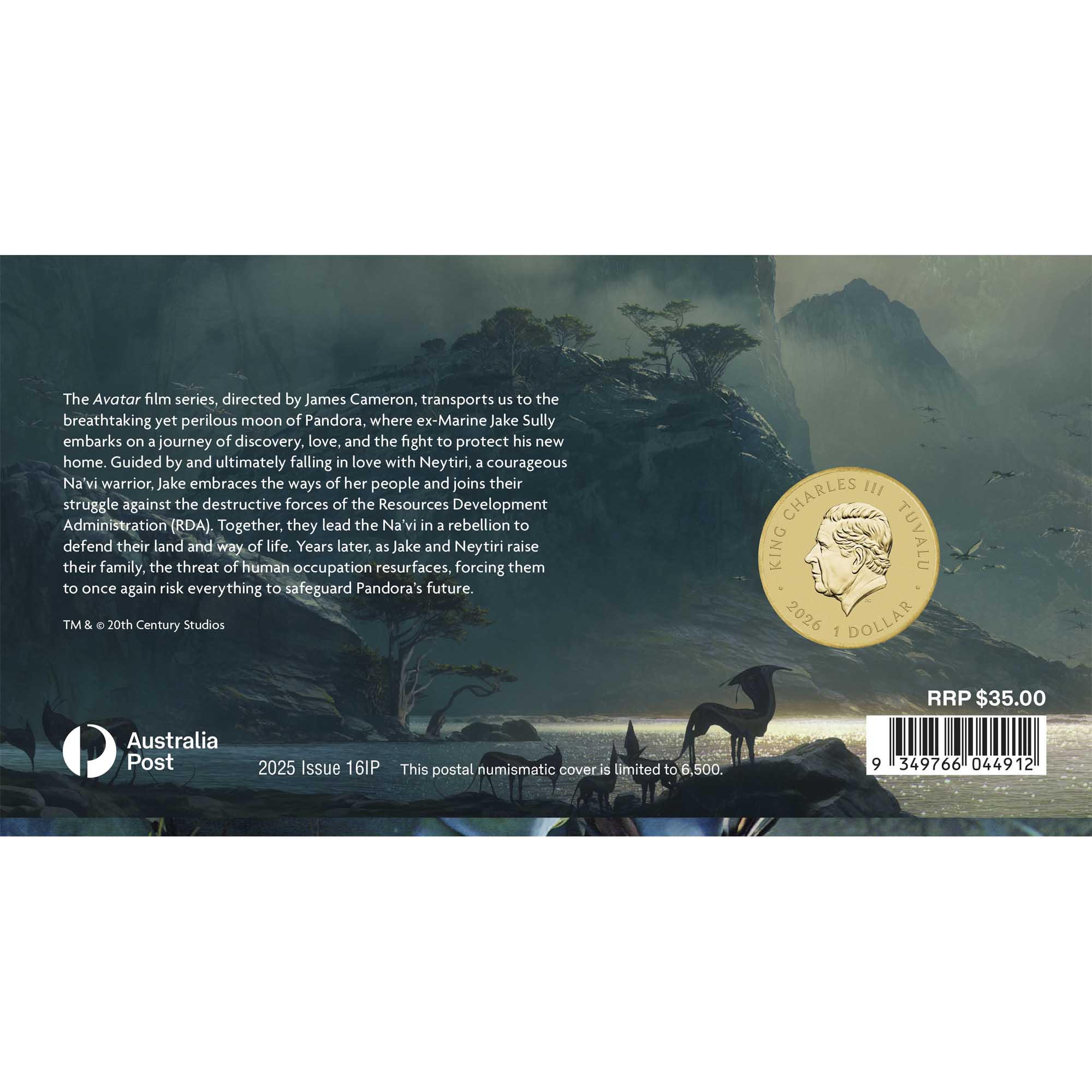 Dodatkowym aututem kolekcjonerskim tej edycji jest prestiżowe połączenie numizmatyki z filatelistyką ( Stamp & Coin Cover). Zestaw zawiera oficjalny znaczek pocztowy Australii o nominale 1/70 AUD, przedstawiający wizerunek Jake’a Sully’ego z filmu Avatar: Droga Wody.
