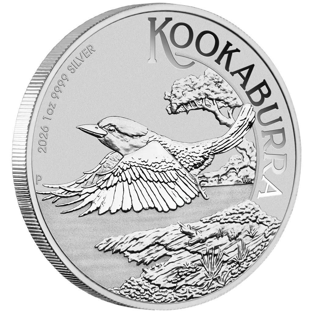 Rewers monety przedstawia efektowny wizerunek kukabury lecącej nad rzeką, w otoczeniu bujnych drzew oraz urwistych skał, oddających dziki i nieokiełznany charakter australijskiej przyrody. Na rewersie widnieje napis „KOOKABURRA”, znak mennicy The Perth Mint w kształcie litery „P”, a także informacje o wadze, próbie srebra oraz roku emisji – 2026.