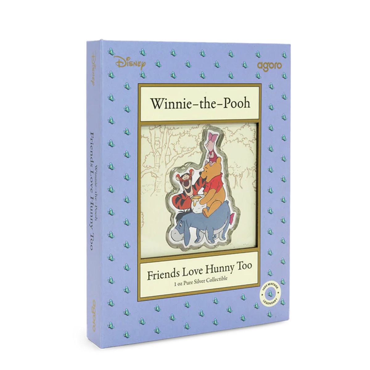 Cała magia Kubusia Puchatka od Disneya została uchwycona w jednej uncji czystego srebra próby 999. Ta barwna moneta ukazuje Kubusia Puchatka w towarzystwie swoich przyjaciół, szczęśliwie przemierzających Stumilowy Las na grzbiecie Kłapouchego. Jako kolejny element serii stworzonej z okazji 100-lecia Kubusia Puchatka, stanowi ciepły i pełen uroku hołd dla przyjaźni, bo każdy łyk miodku jest słodszy, gdy dzielisz go z innymi.