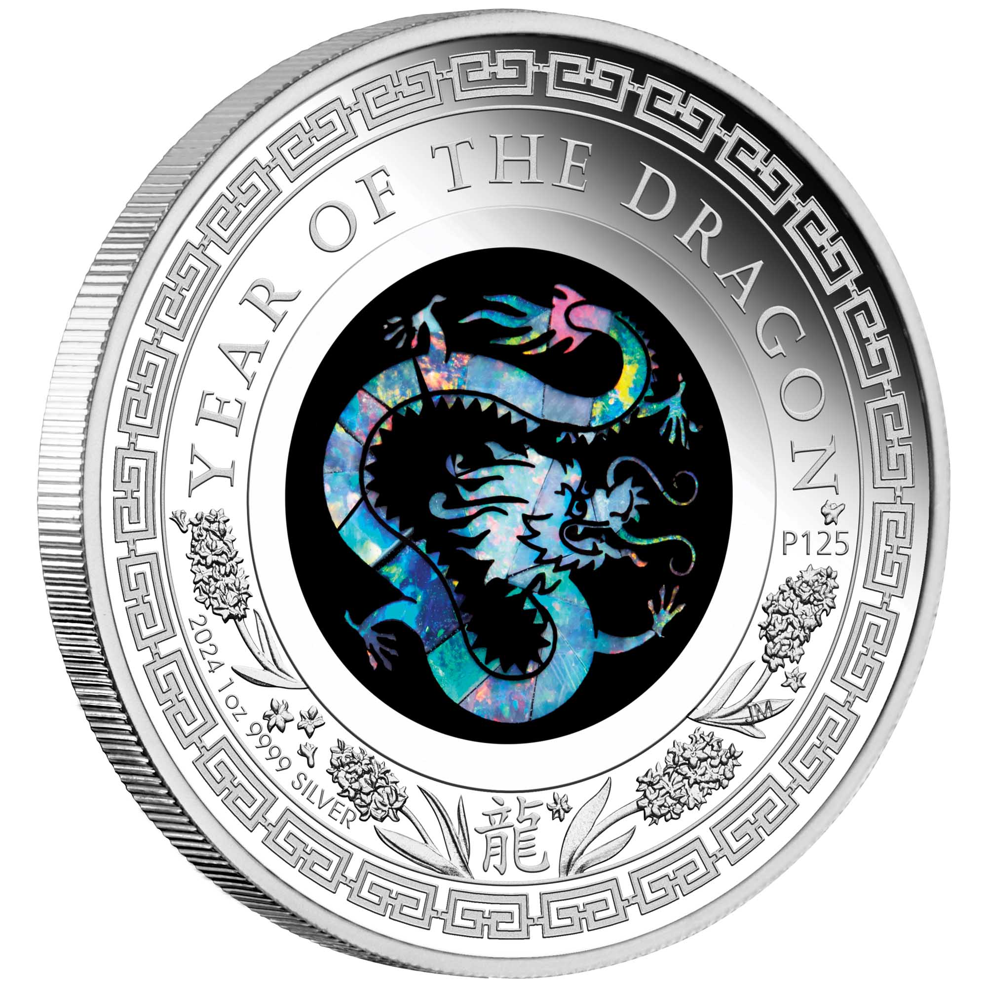 Rewers monety przedstawia kompozycję nawiązującą do chińskiego roku Smoka 2024. Centralnym elementem jest Smok wykonany z oryginalnego autralijskiego opalu, którego gra barw nadaje każdej monecie unikalny charakter – nie ma dwóch identycznych egzemplarzy.
