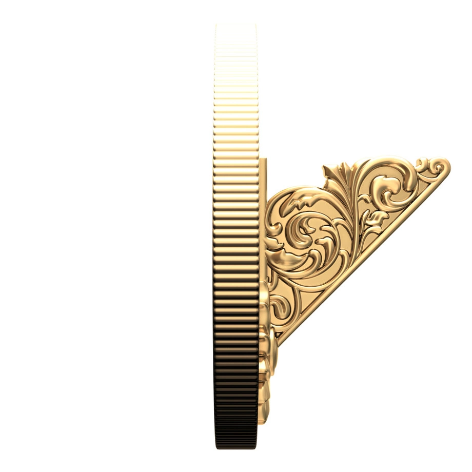 Perfekcyjnie wypolerowane tło w jakości proof kontrastuje z bogato zdobionymi reliefami, tworząc grę światła, która zmienia się wraz z każdym ruchem. Ornamenty inspirowane klasyczną sztuką dodają elegancji i ponadczasowego stylu, a złocenie podkreśla prestiż tej emisji.